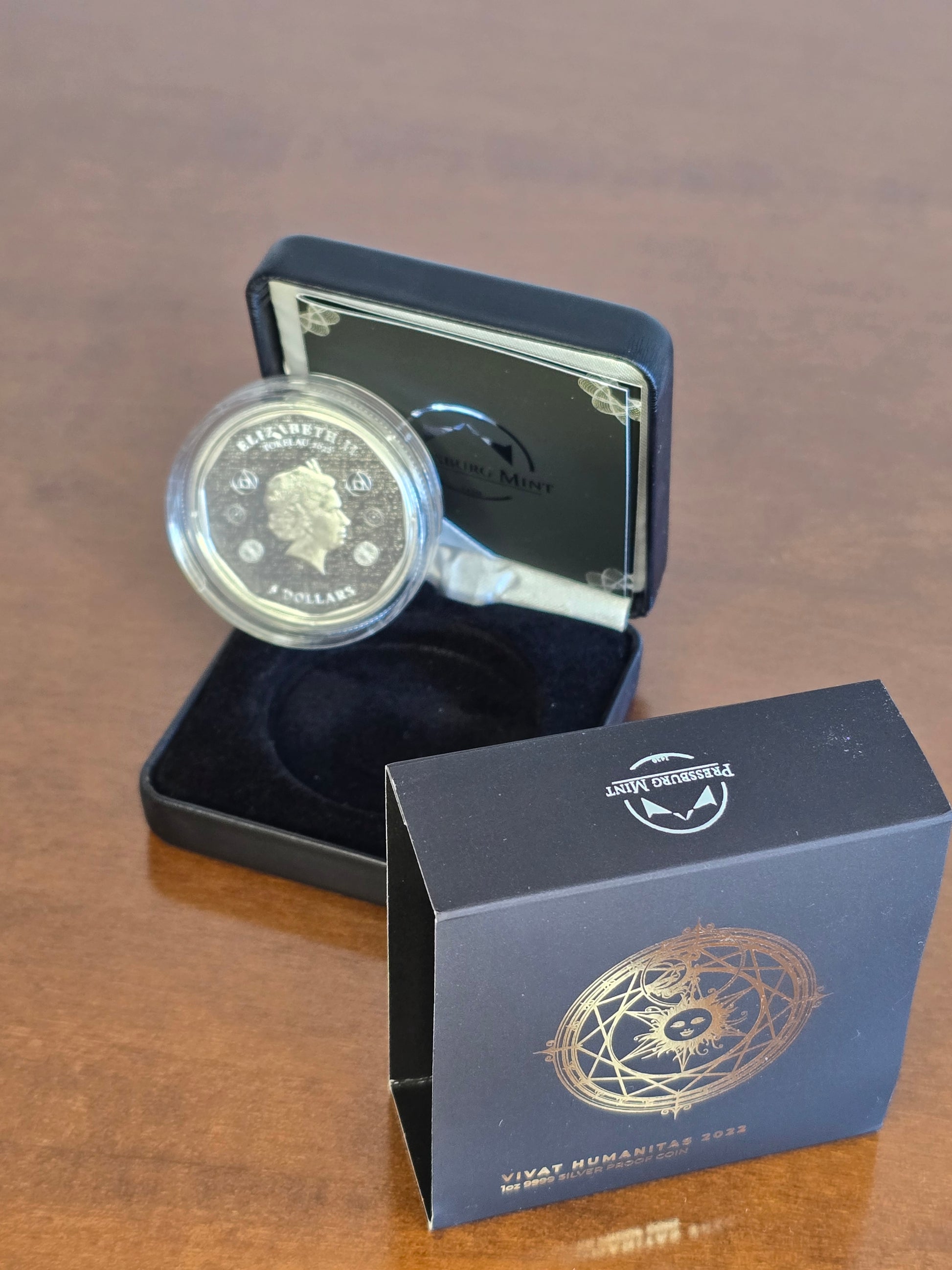 La moneta d'argento Tokelau: Vivat Humanitas 1 oncia d'argento 2022 Proof è un'interessante proposta di investimento preparata dal produttore slovacco di metalli preziosi Pressburg Mint. Ogni esemplare della serie in argento “Vivat Humanitas” è stato realizzato in metallo puro con titolo Ag.9999, del peso di 1 oncia troy (28 grammi circa) e del diametro di 38 mm, in standard proof. La caratteristica distintiva di questo esemplare è la presenza di 4 cristalli Swarovski sul rovescio.
